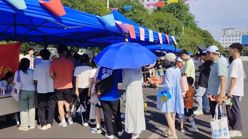 炎热的高温抵挡不住员工的参与热情,参加套圈圈游戏的同学络绎不绝,在帐篷前排起了一条长龙,成为了本次端午游园最受欢迎的活动之一,不少过往的同学和老师也被游戏氛围所吸引,积极参与到套圈游戏中。